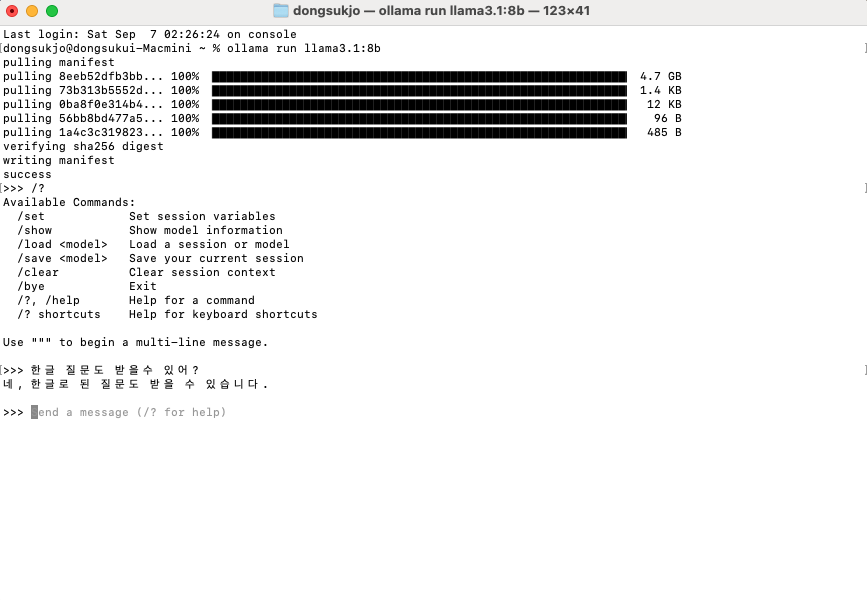 모두 설치가 끝나면 한글로 질문을해도 잘 대답해 주는걸 볼수 있다.