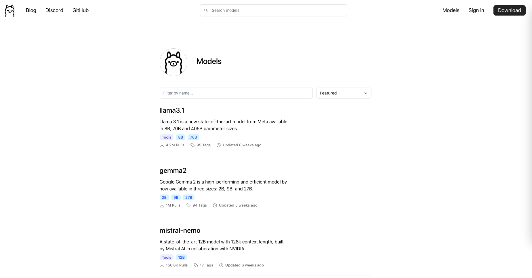 홈페이지에 접속해서 다운도르를 진행한다. https://ollama.com/